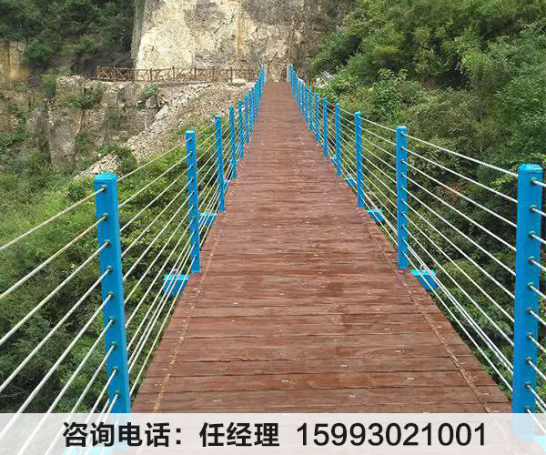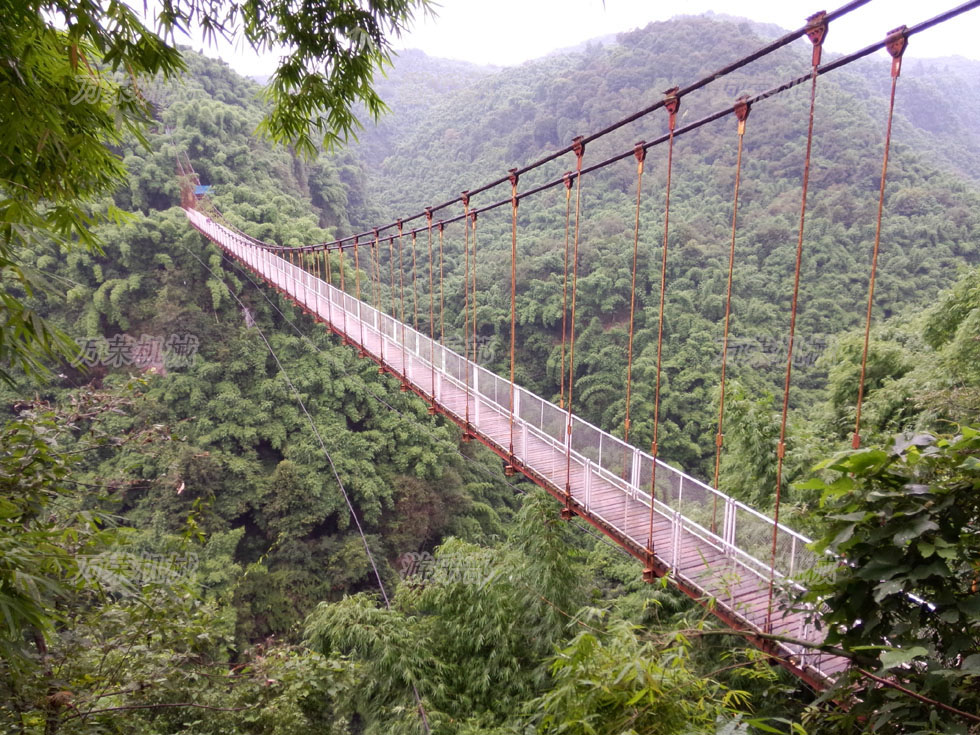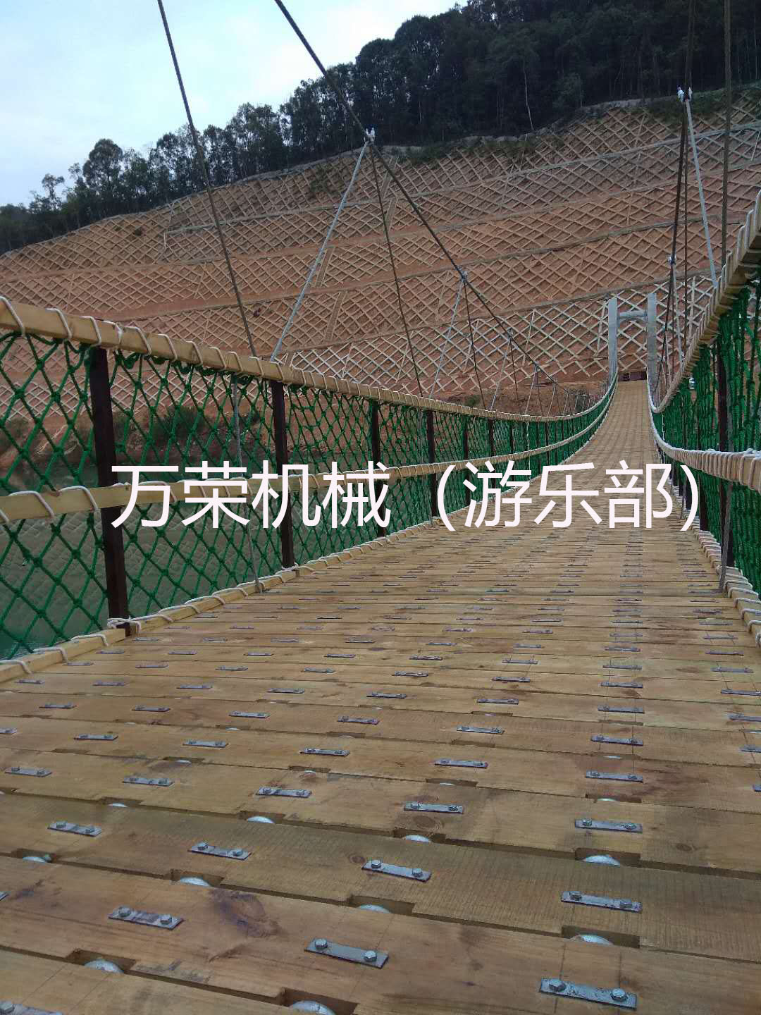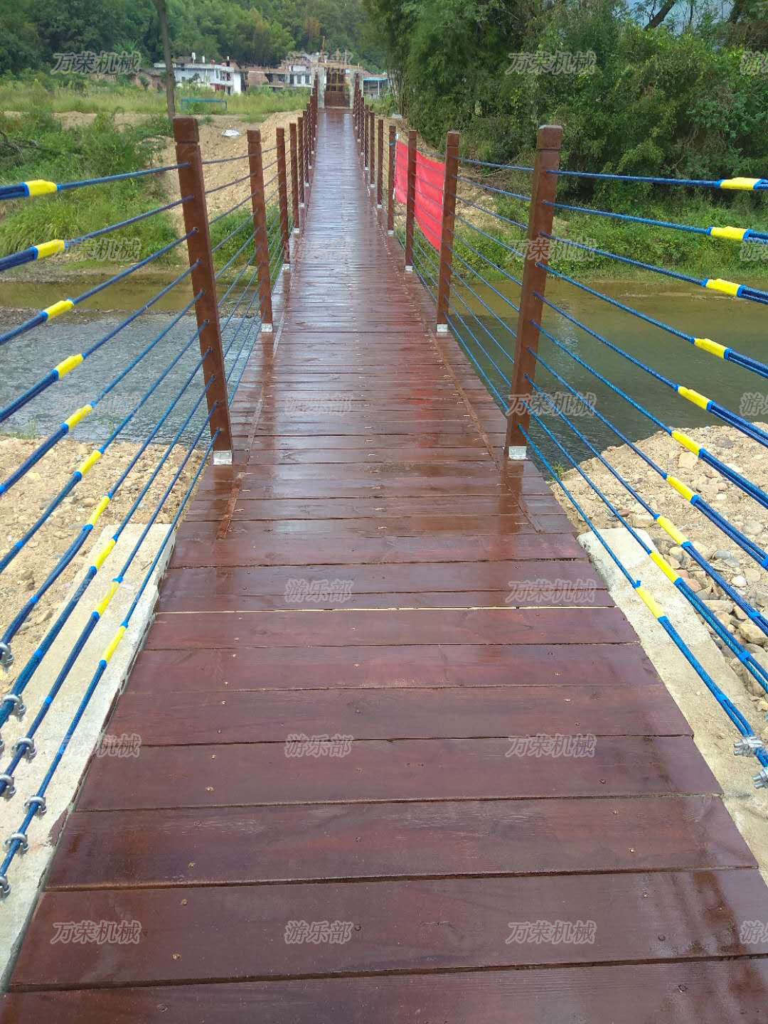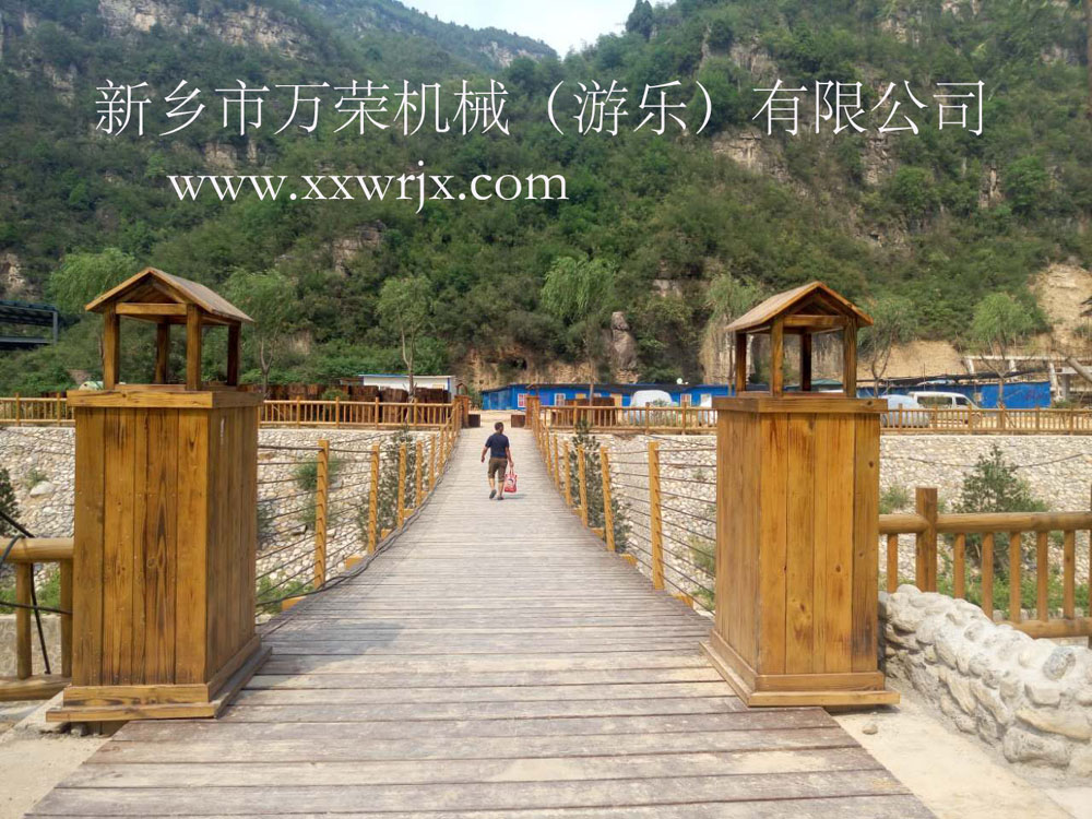 描述:這種木板吊橋,是一種供游人娛樂(lè)的橋,它將一人寬的木板栓在鋼索上吊起來(lái),橋的下方是一條35米寬的小河,橋面離水面也就是五十來(lái)公分高。