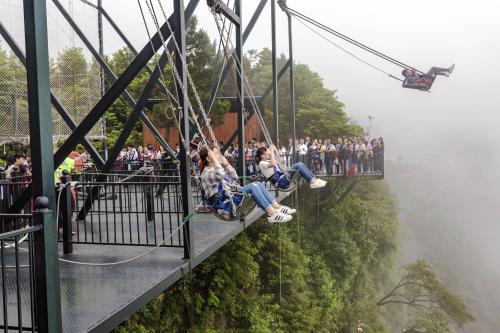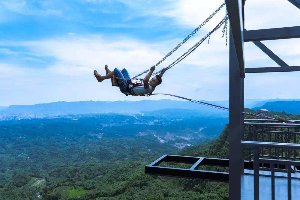 懸崖秋千是一種懸崖邊的極限刺激運(yùn)動(dòng)。秋千的座椅,被電吸鐵拉到懸崖內(nèi)側(cè)于15米-25米高的地方,吸鐵忽然松開,長(zhǎng)長(zhǎng)的秋千瞬間向懸崖外蕩去,帶給人以刺激感覺。